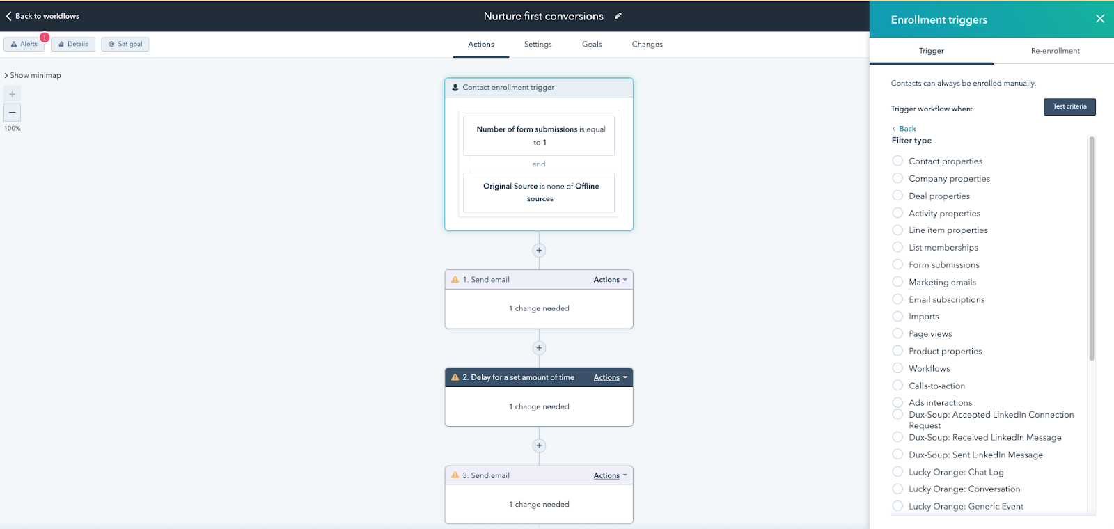 Remember, you will want to plan out all of your triggers, conditions, exclusions, lifecycle stage qualifications, etc. Make your schematic or roadmap as complete and thoughtful as possible. You are better off keeping your campaign simple than incomplete. Keep your team’s bandwidth in mind when deciding how segmented and personalized to be in your campaigns.